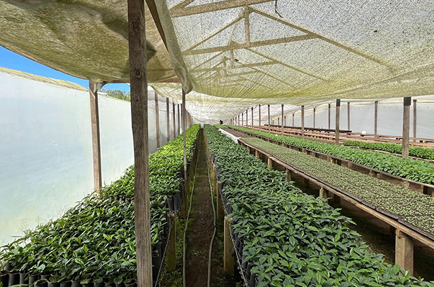 「Prisma Coffee社」が契約する2つの農園を訪問。1つ目の農園は広大な平地にあり、コーヒーだけでなくフルーツや観葉植物の栽培、酪農なども行われていました。60名くらいのピッカーがいたり、コーヒーも苗木から育てていたり、大きな規模の農園です。