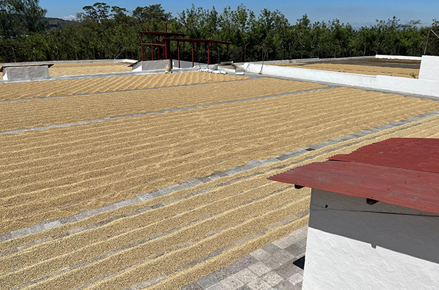 生産量も多く、ちょうどパティオ(中庭)ではたくさんの豆が干されてるところでした。こちらでは品質の高いコマーシャルコーヒーがつくられています。